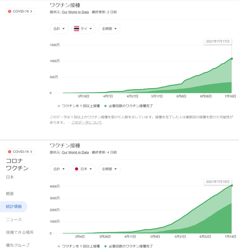 タイと日本のワクチン接種状況を比べました (7月中旬)