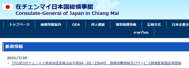 在チェンマイ日本国総領事館より、タイ政府が7月20日から適用する新たな規制強化についての詳細のお知らせ(メール)が届きましたので共有させて頂きます。