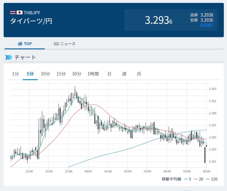 バーツ安が続いています・・2018年10月以来です! (8月7日現在)