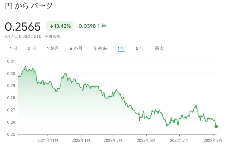 1万円がたったの2,565バーツです。タイで働いている人はバーツ高で日本に帰国すれば割安とかんじることでしょう。